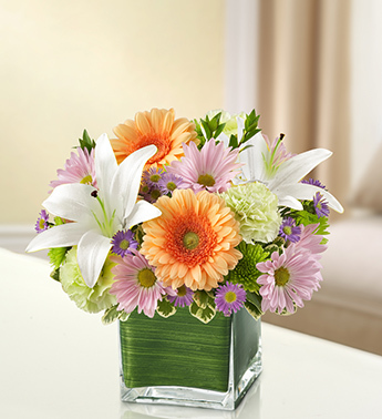 Express your sympathy and compassion perfectly with this beautiful multicolored arrangement of pastel blooms such as roses, Gerberas, lilies, carnations and more. A comforting tribute for the home or memorial service.