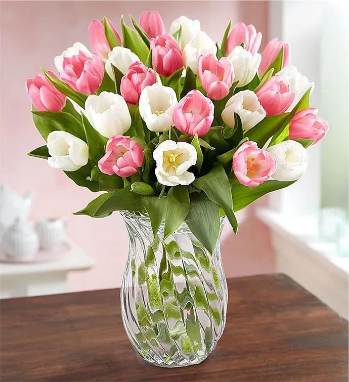 Our sweet pink & white tulips are a welcome surprise for spring. Send a bouquet of 15 or 30 to brighten someone’s day, whether it’s for a special reason or “just because.”