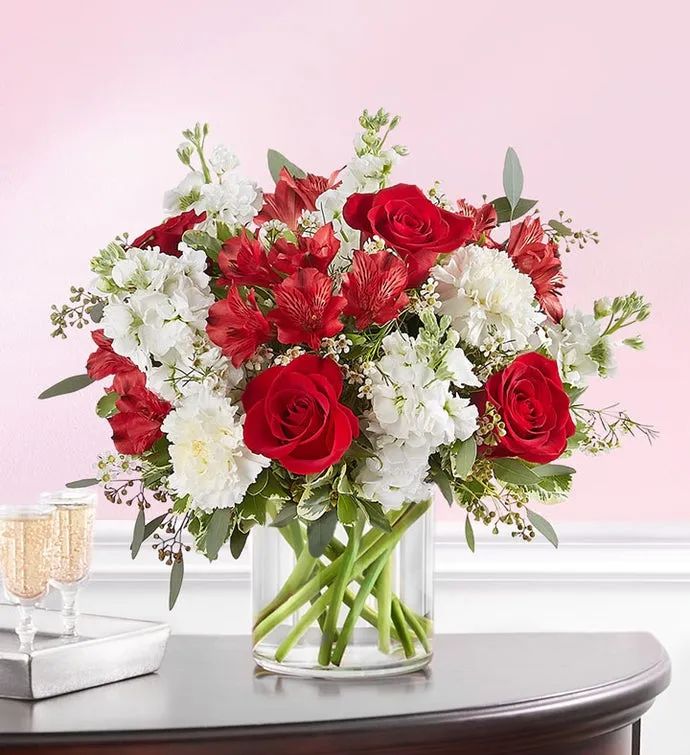 A classic gift for the people and moments worth celebrating. Rich red and pristine white blooms are hand-gathered with lush greenery. A clear glass cylinder vase holds this beautiful surprise, which brings your deepest sentiments to light. Designed by a Whatabloom Florist
