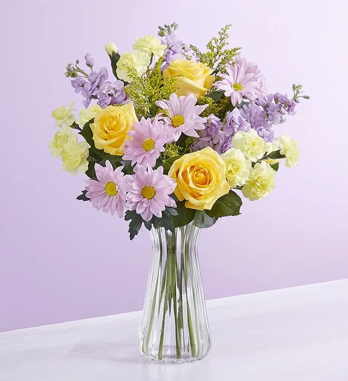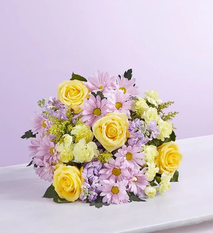 The season of rebirth and renewal is also the season for reconnecting with the ones we love, letting them know we’re thinking of them. Rekindle a friendship—or even a romance—with our delightful bouquet in shades of yellow and lavender. Designed by a Local Whatabloom Florist